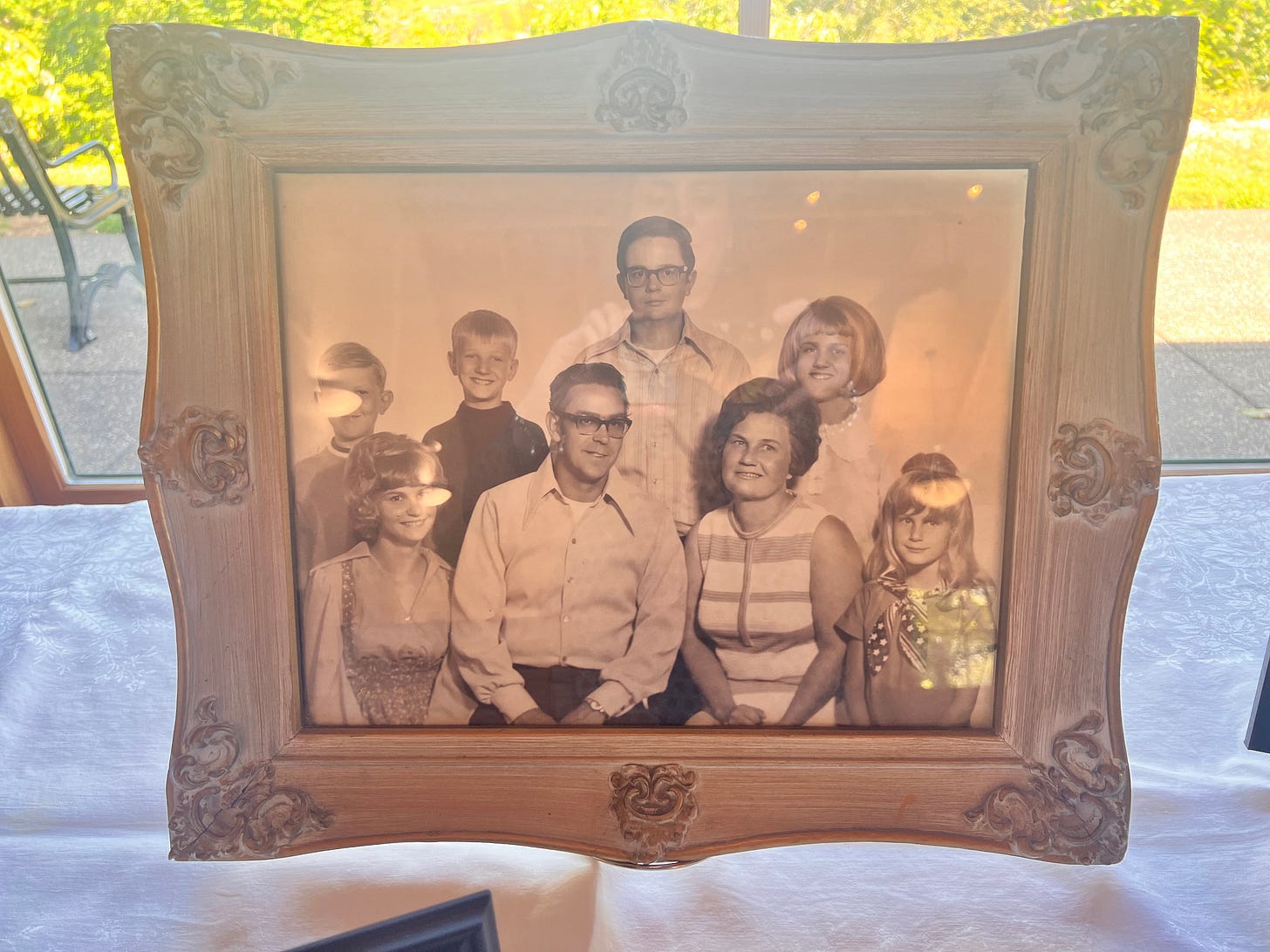 This photo was taken around 1975. My mother stands here with her family—her three brothers, two sisters, and both of her parents. Of the eight people in this photo, only two are still alive.